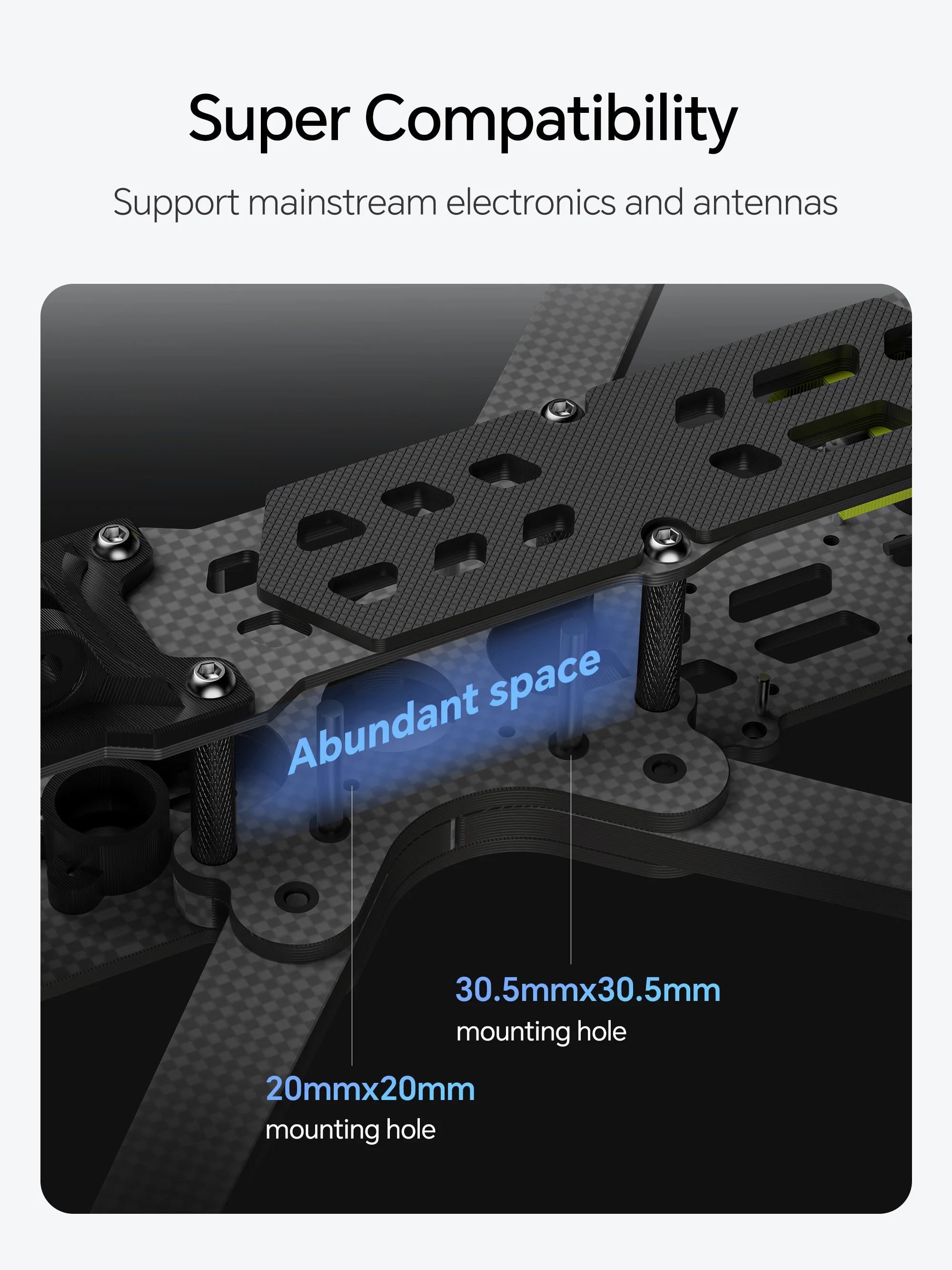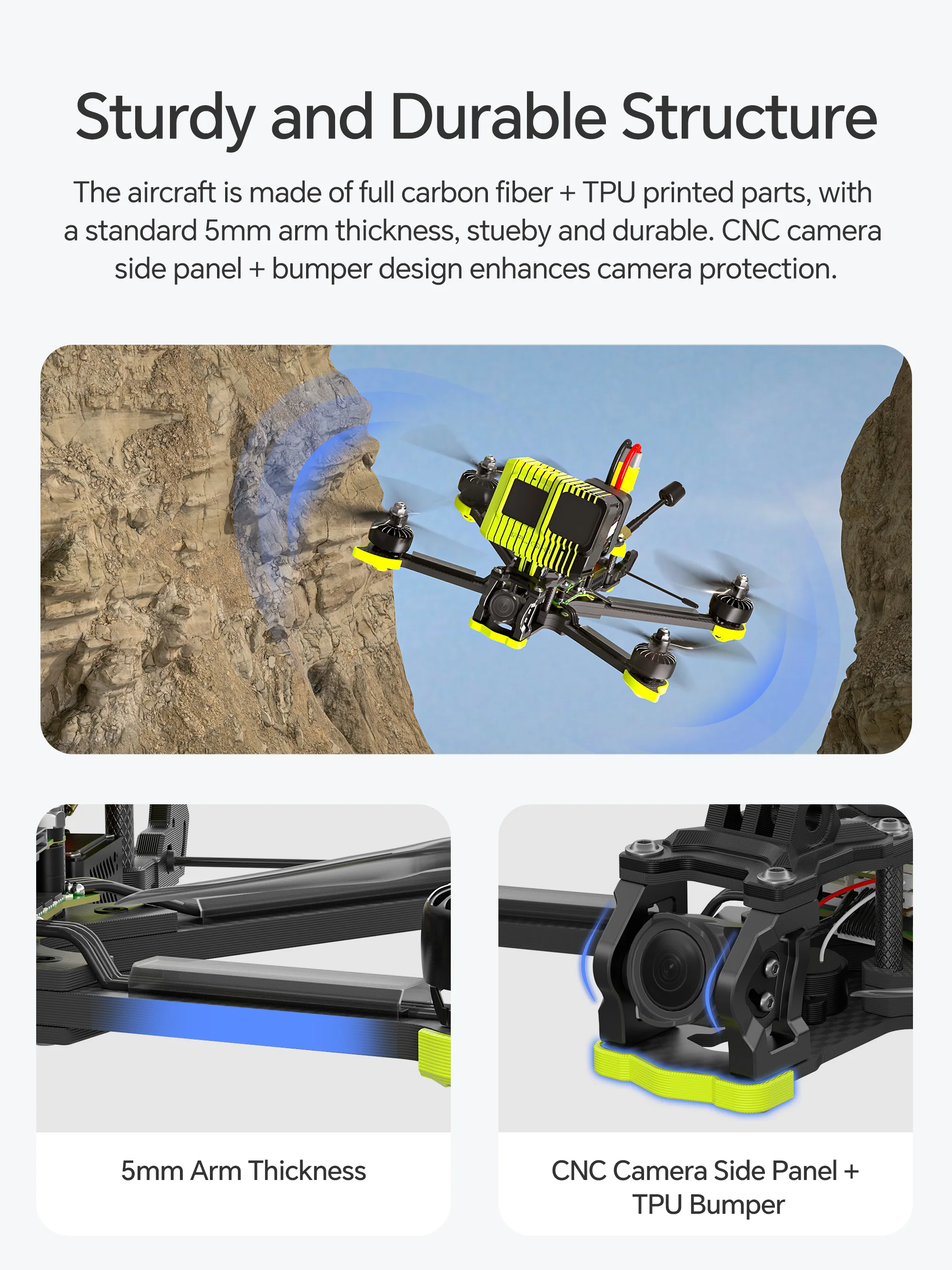 A combination of carbon fiber and aluminum ensures a lightweight yet robust structure for your camera equipment. Designed for clear video output without propellers obstructing the view, enhancing the aesthetic quality of your aerial footage.